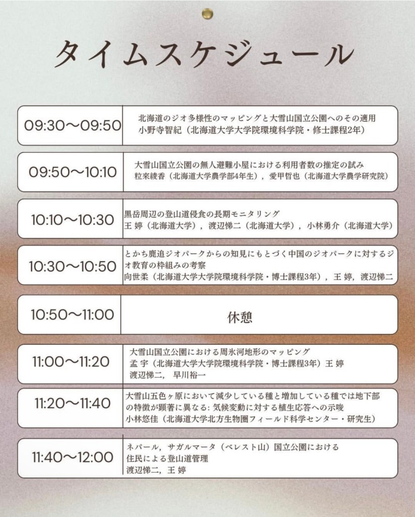 2025年3月22日に第7回大雪山国立公園研究成果報告会が鹿追町ピュアモルトクラブハウス(オンライン併用)で開催されました。